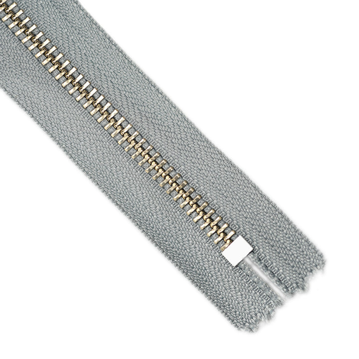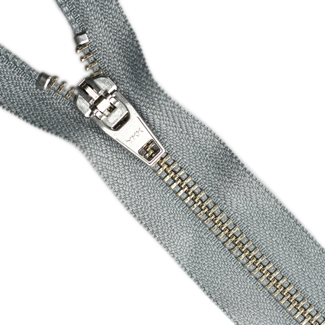 Medium gauge YKK jean zip designed specifically for use on denim jeans and jackets with elements in nickel. Hard-wearing jean zips that are suited to workwear, outdoor-wear, and heavy-duty fabrics.