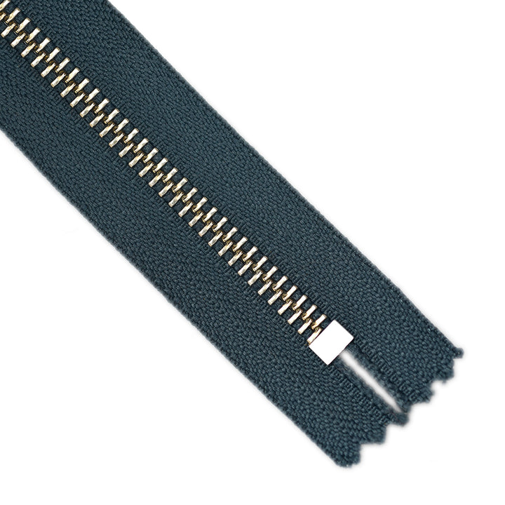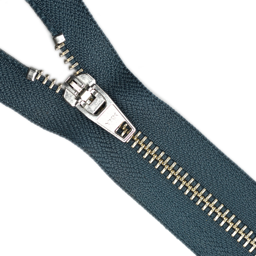 Medium gauge YKK jean zip designed specifically for use on denim jeans and jackets with elements in nickel. Hard-wearing jean zips that are suited to workwear, outdoor-wear, and heavy-duty fabrics.