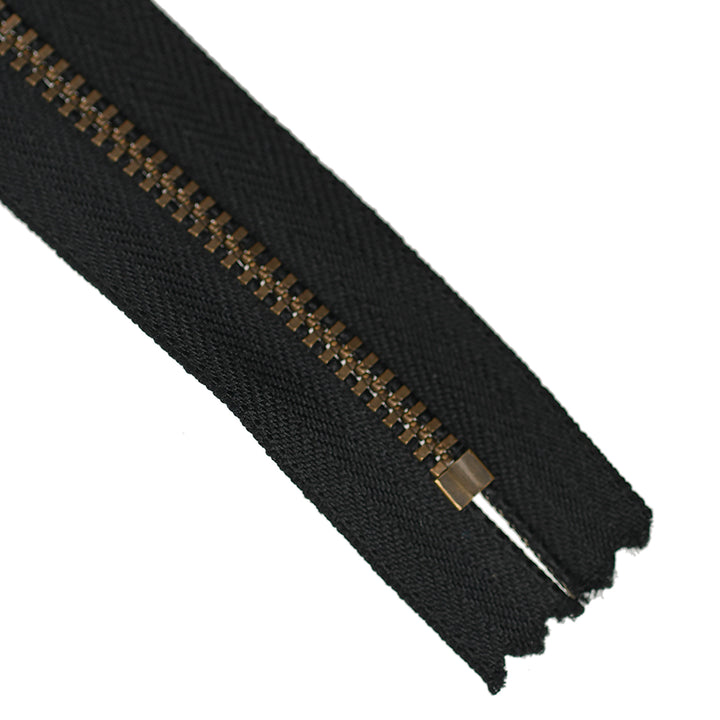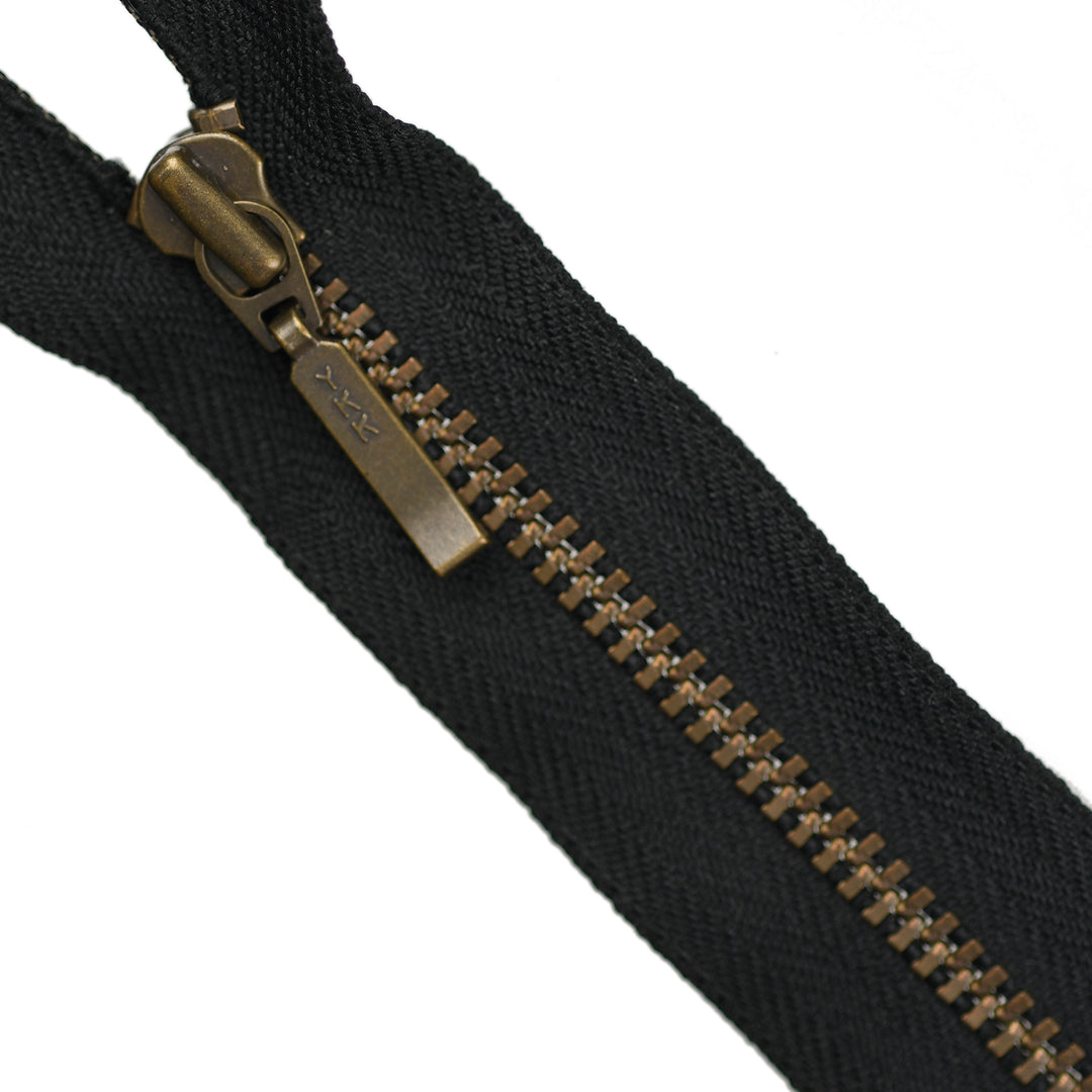 YKK METAL CLOSED-END ZIP NO.3 ANTIQUE GOLD BOARD-PULL COL 580 BLACK