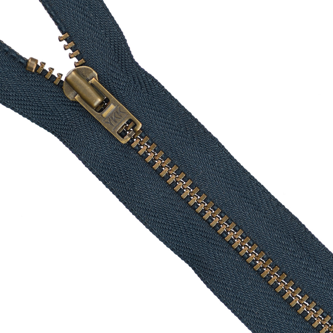 YKK METAL CLOSED-END ZIP NO.4.5 ANTIQUE GOLD COL 560 NAVY