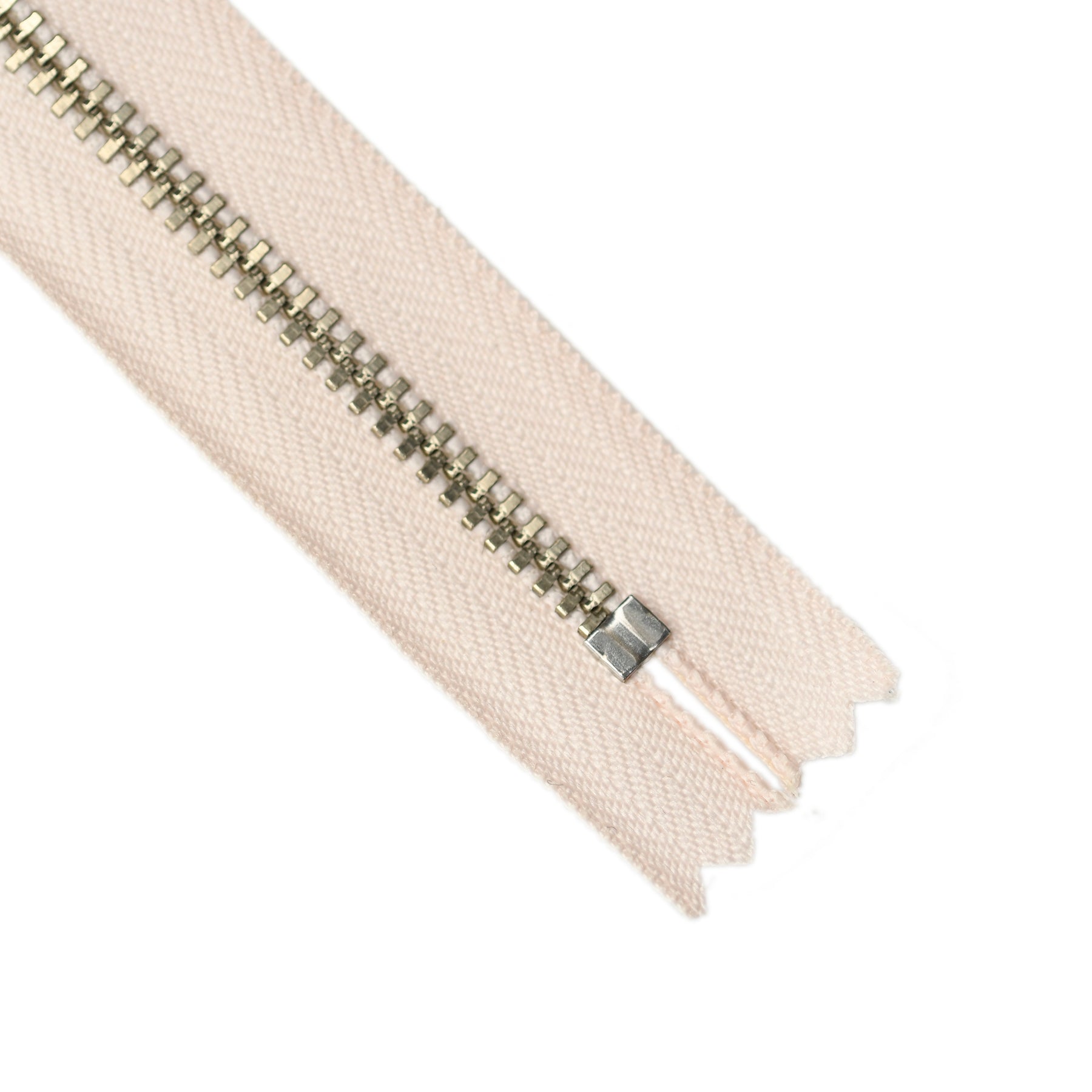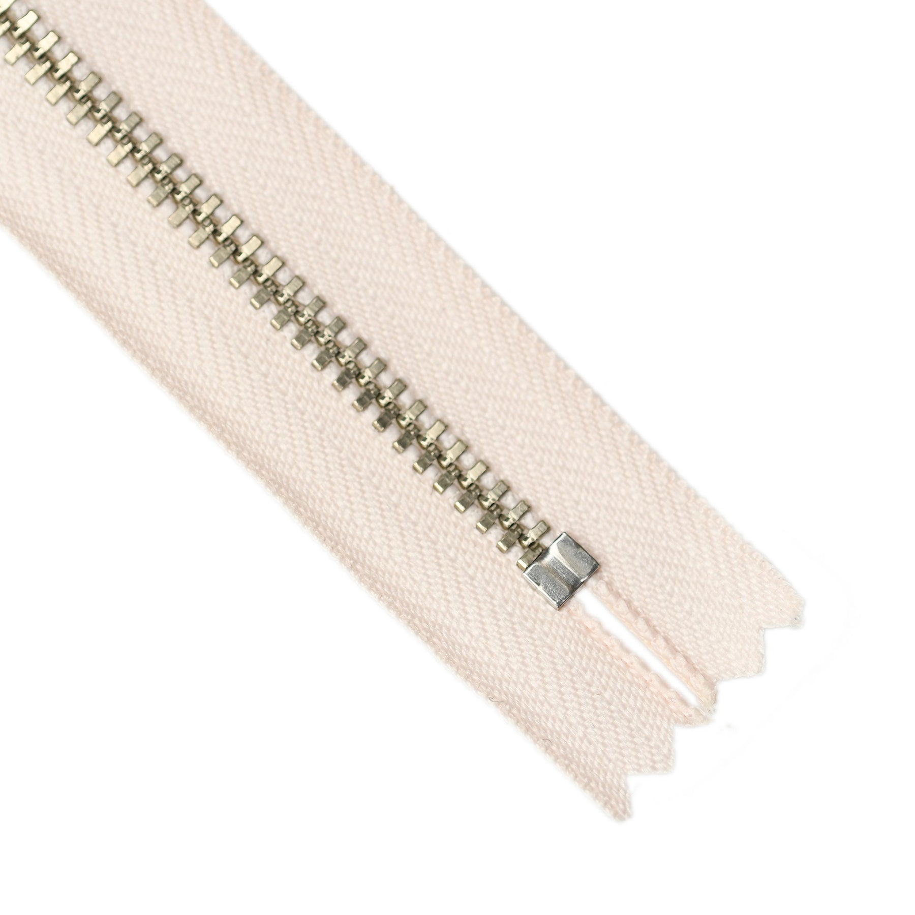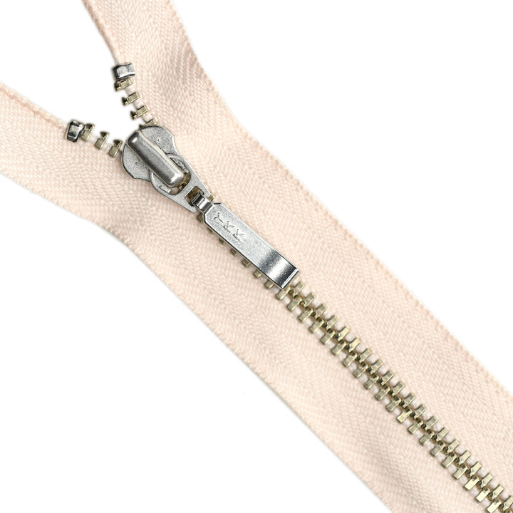 YKK light gauge, closed-end metal zips in nickel finish and featuring the distinctive board-pull slider. Suitable for applications including garments, footwear, luggage and bags.