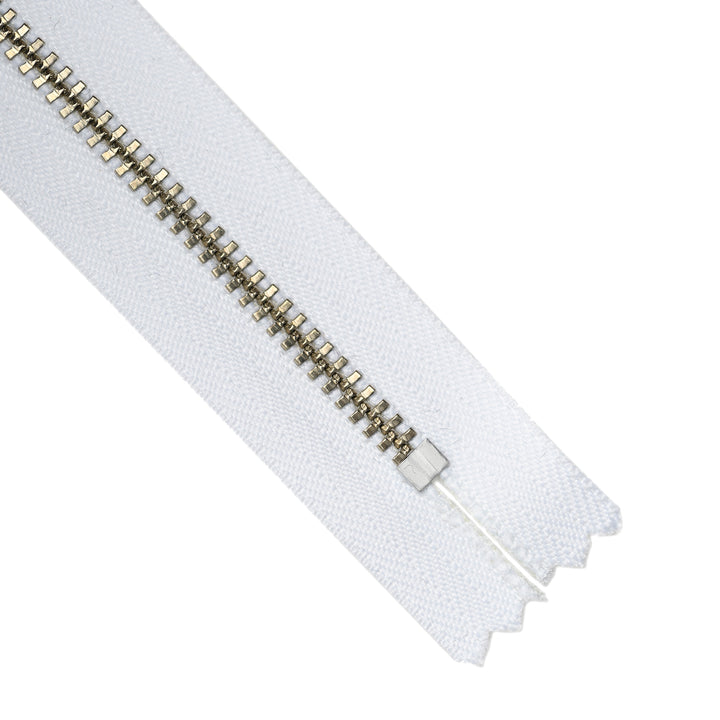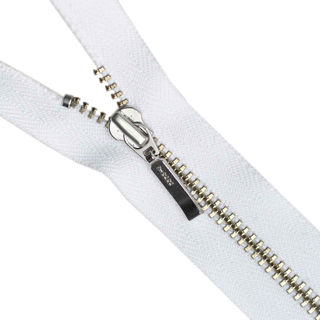 YKK METAL CLOSED-END ZIP NO.4.5 NICKEL BOARD-PULL COL 501 WHITE