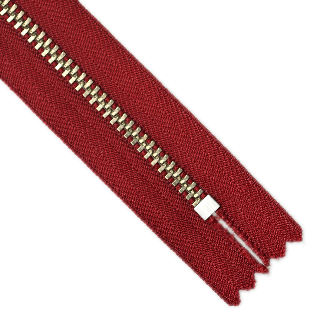 YKK light gauge, closed-end metal zips in nickel finish and featuring the distinctive board-pull slider. Suitable for applications including garments, footwear, luggage and bags.