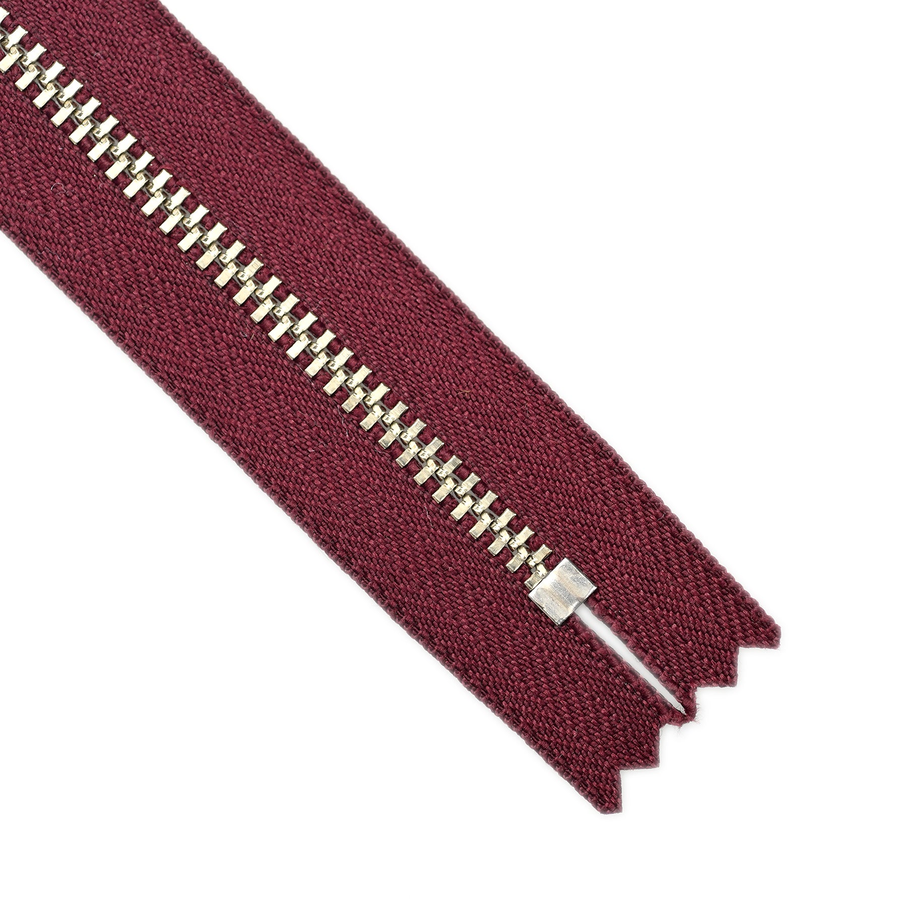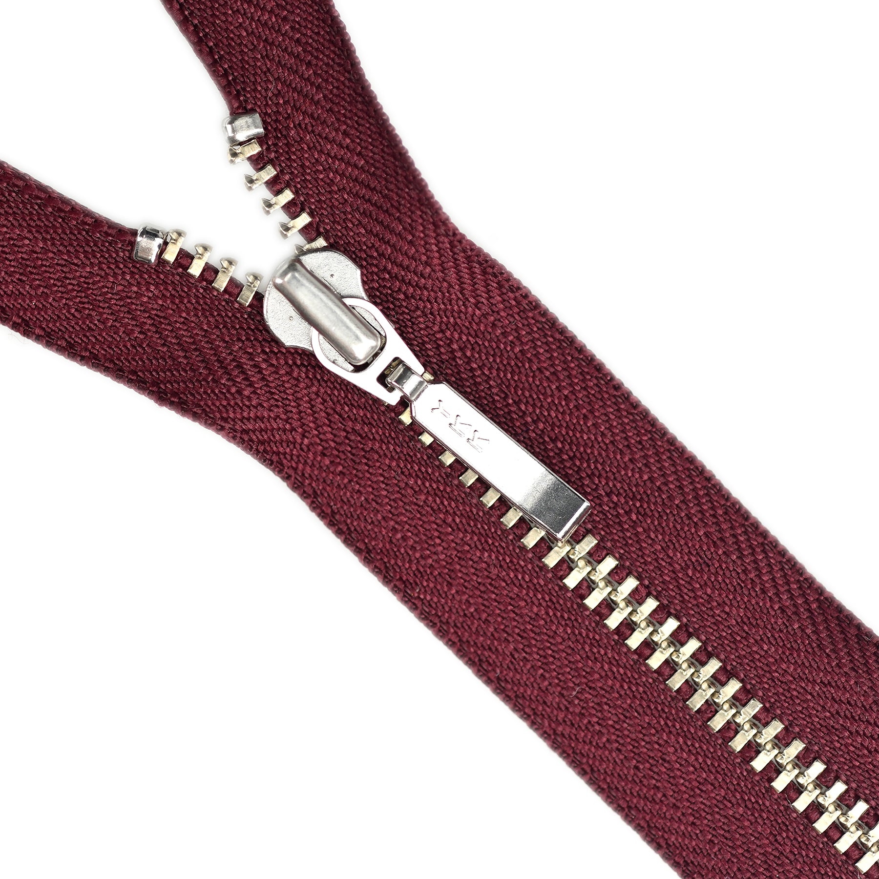 YKK METAL CLOSED-END ZIP NO.4.5 NICKEL BOARD-PULL COL 527 BURGUNDY