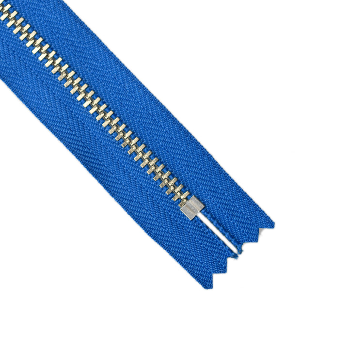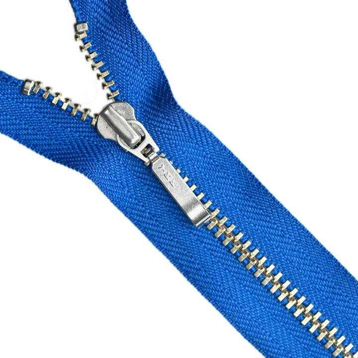 YKK light gauge, closed-end metal zips in nickel finish and featuring the distinctive board-pull slider. Suitable for applications including garments, footwear, luggage and bags.