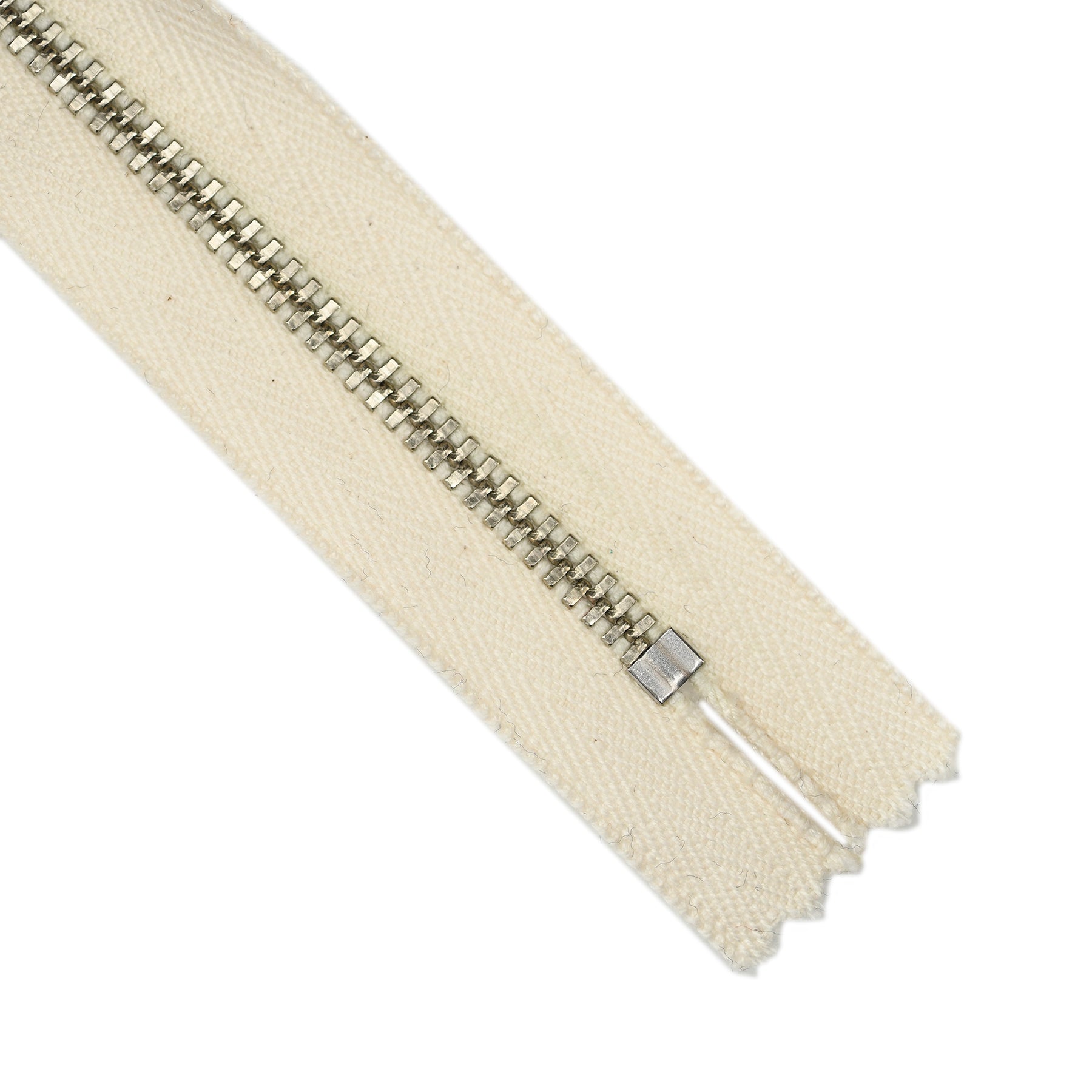 YKK light gauge, closed-end metal zips in nickel finish with a distinctive board-pull slider. Suitable for applications including garments, footwear, luggage and bags.