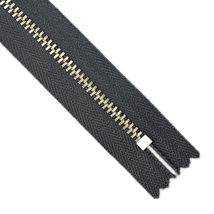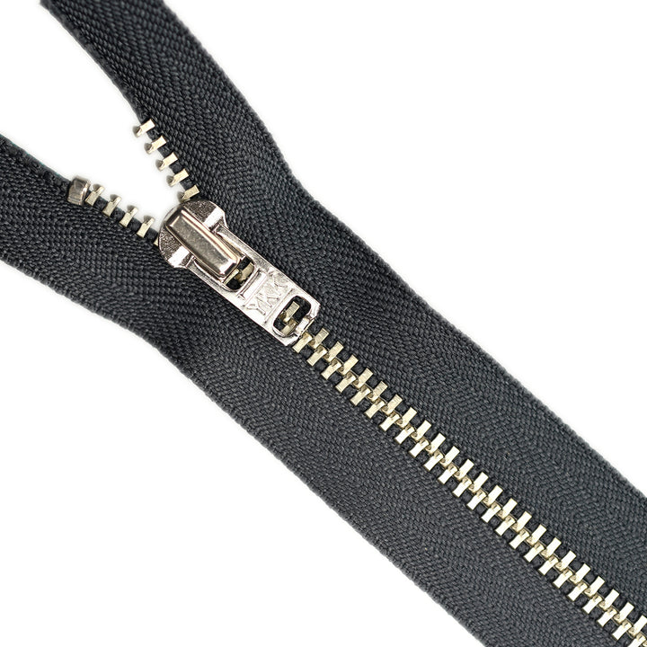 YKK light gauge, closed-end metal zips in nickel finish. Suitable for applications including garments, footwear, luggage and bags.