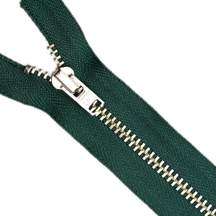 YKK light gauge, closed-end metal zips in nickel finish. Suitable for applications including garments, footwear, luggage and bags.