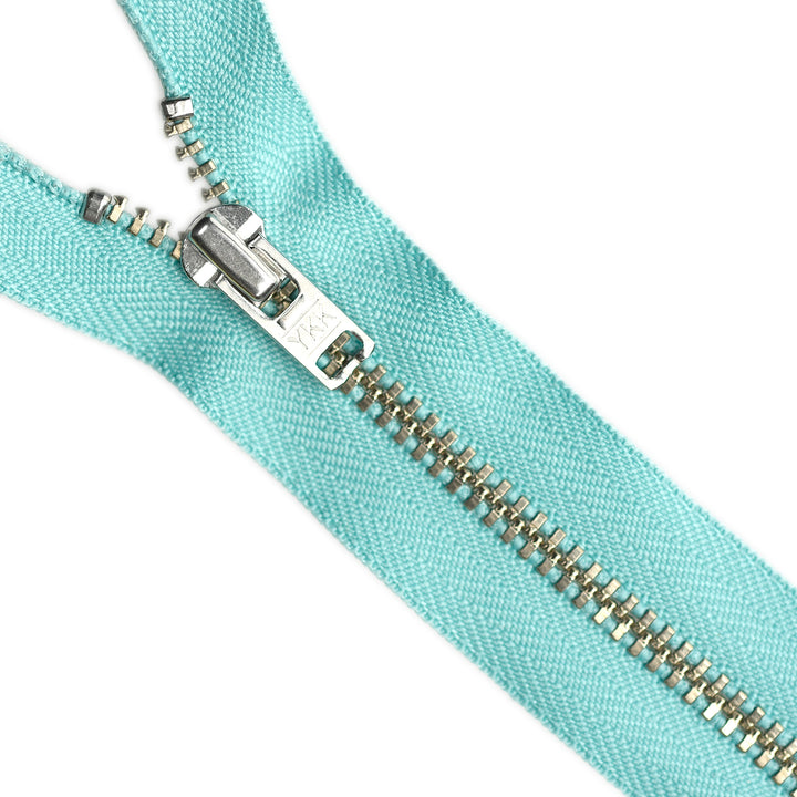 YKK light gauge, closed-end metal zips in nickel finish. Suitable for applications including garments, footwear, luggage and bags.