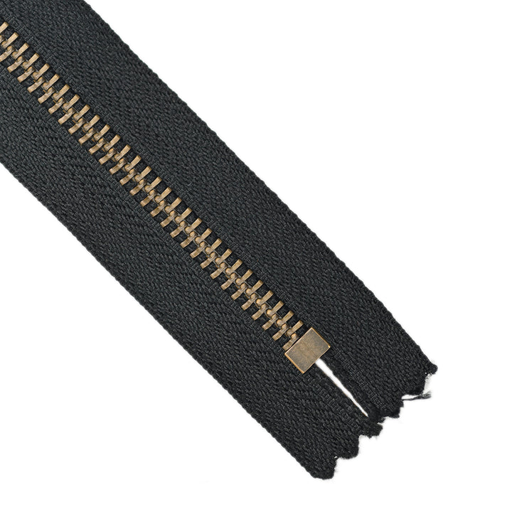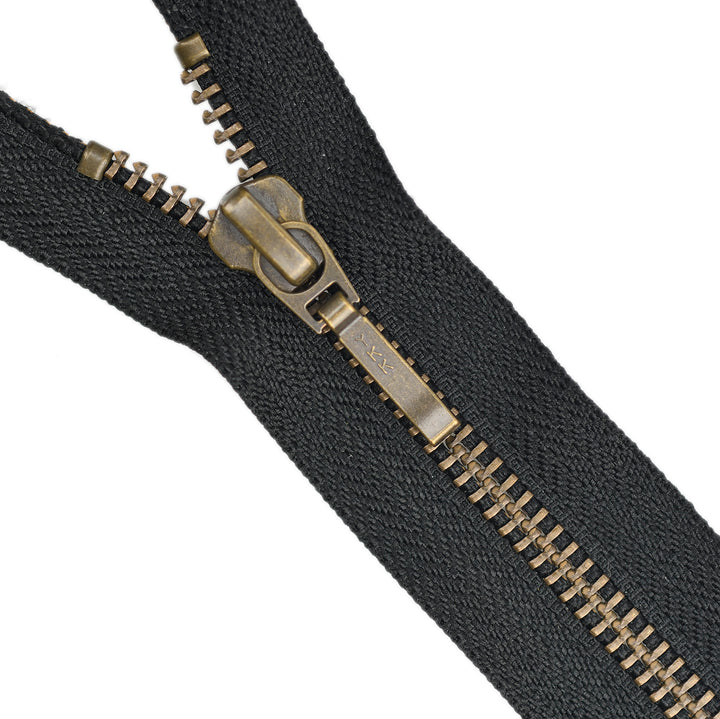YKK METAL CLOSED-END ZIP NO.5 ANTIQUE GOLD BOARD-PULL COL 580 BLACK