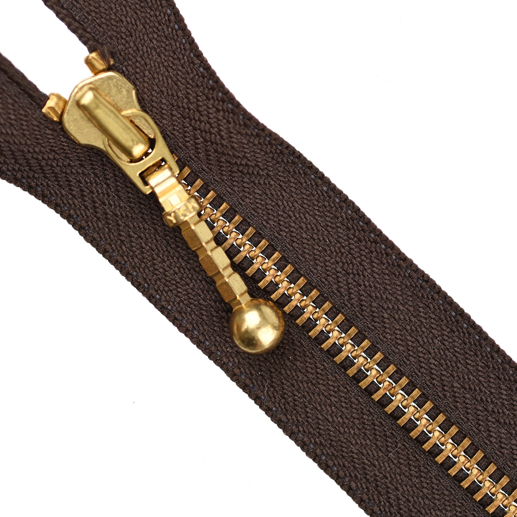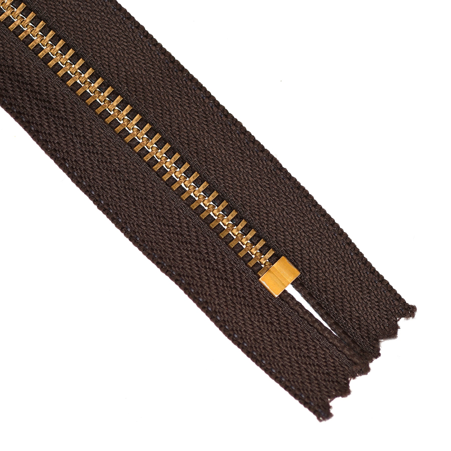 YKK METAL CLOSED-END ZIP NO.5 GOLD PENDULUM-PULL COL 570 BROWN