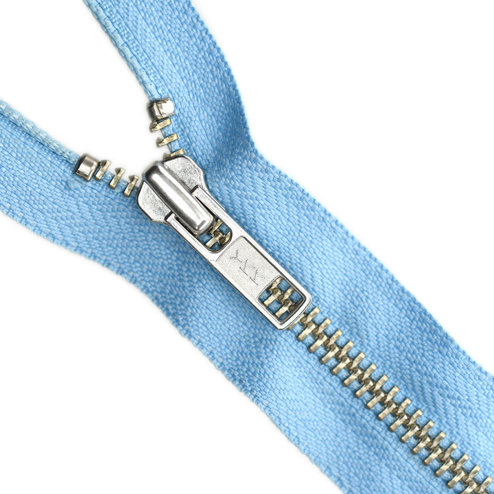 YKK medium gauge, closed-end zip with Nickel elements. Suitable for workwear, dresses/skirts, luggage and bags.