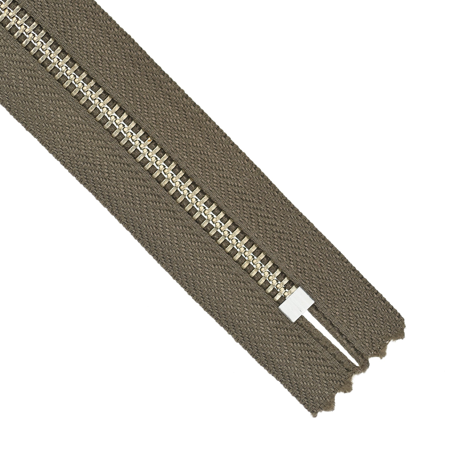 YKK medium gauge, closed-end zip with Nickel elements. Suitable for workwear, dresses/skirts, luggage and bags.