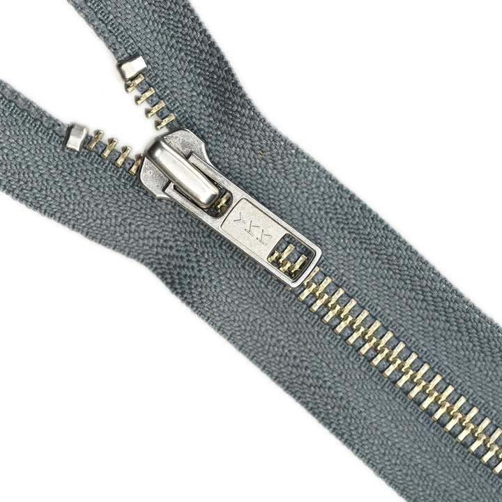 YKK medium gauge, closed-end zip with Nickel elements. Suitable for workwear, dresses/skirts, luggage and bags.