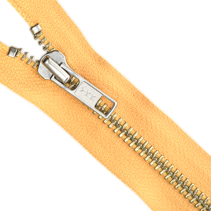 YKK medium gauge, closed-end zip with Nickel elements. Suitable for workwear, dresses/skirts, luggage and bags.