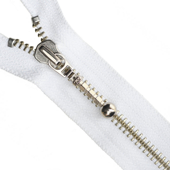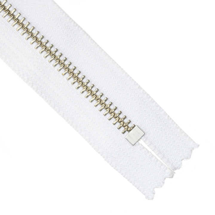 YKK METAL CLOSED-END ZIP NO.5 NICKEL PENDULUM-PULL COL 501 WHITE