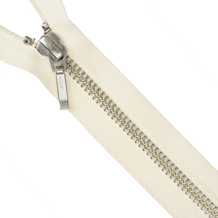 YKK METAL OPEN-END ZIP NO.5 NICKEL BOARD-PULL COL 801 CREAM