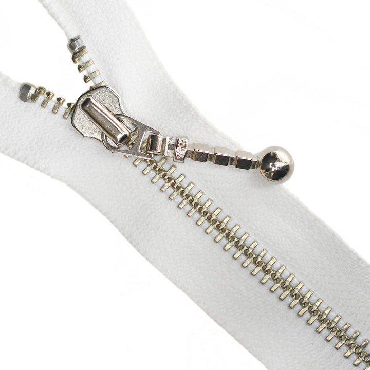 YKK METAL OPEN-END ZIP NO.5 NICKEL PENDULUM-PULL COL 501 WHITE